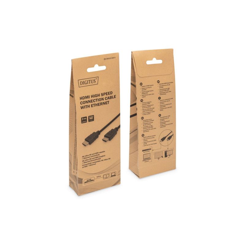 Digitus HDMI Premium High Speed Connection Cable, Type A M/M, 2.0m, w/Ethernet, Ultra HD, 4K@60Hz, gold, bl (DB-330123-020-S)