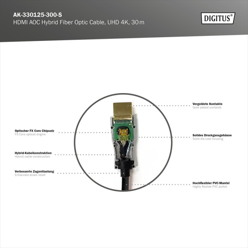 Digitus Кабель HDMI UHD 4K, AOC hybrid-fiber, type A M/M, 30м, черный (AK-330125-300-S)