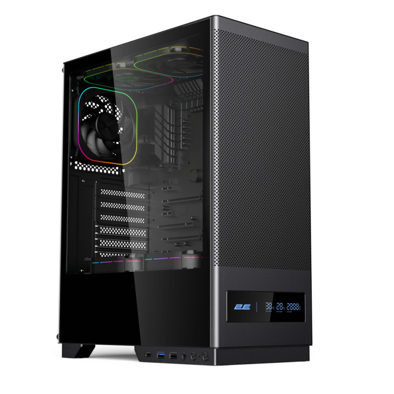 2E Gaming Корпус 2E GAMING Iconic DS V8202B без БП, 1xUSB3.0, 1х USB 2.0, 1xUSB Type-C, 3x120мм ARGB, VGA 330мм, LCS ready, контроллер з пультом, дисплей, TG Side Panel, ATX, чёрный (2E-V8202B)
