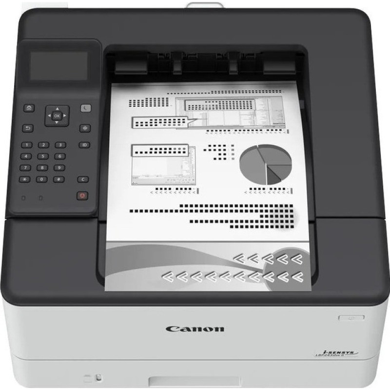 Canon i-SENSYS LBP243dw II (7187C013) — компактный чёрно-белый лазерный принтер А4 с Wi-Fi, скоростью до 36 стр/мин и временем выхода первой страницы ~5 с. Автоматическая двусторонняя печать, разрешение до 1200×1200 dpi, кассета на 250 листов + многоцелевой лоток на 100 листов. Поддержка мобильной печати (Canon PRINT Business, AirPrint, Mopria), защищённая печать с PIN-кодом, 5-строчный ЖК-дисплей. В комплекте стартовый картридж на 1500 страниц. Надёжный выбор для малого офиса, гибридной работы или дома с высокой производительностью.