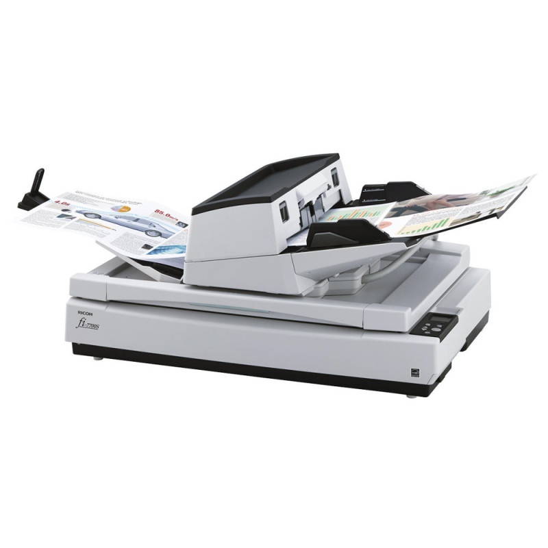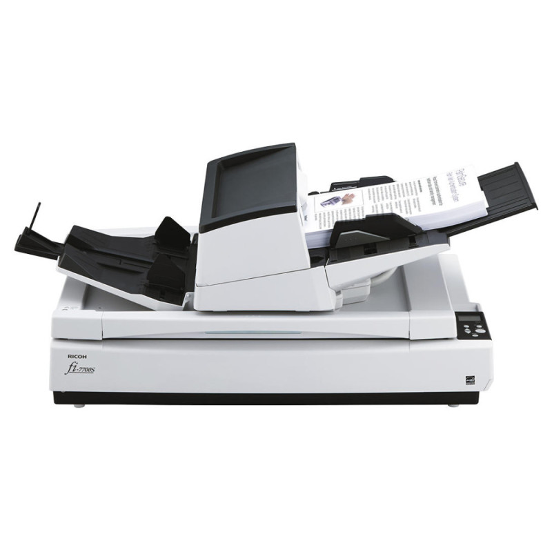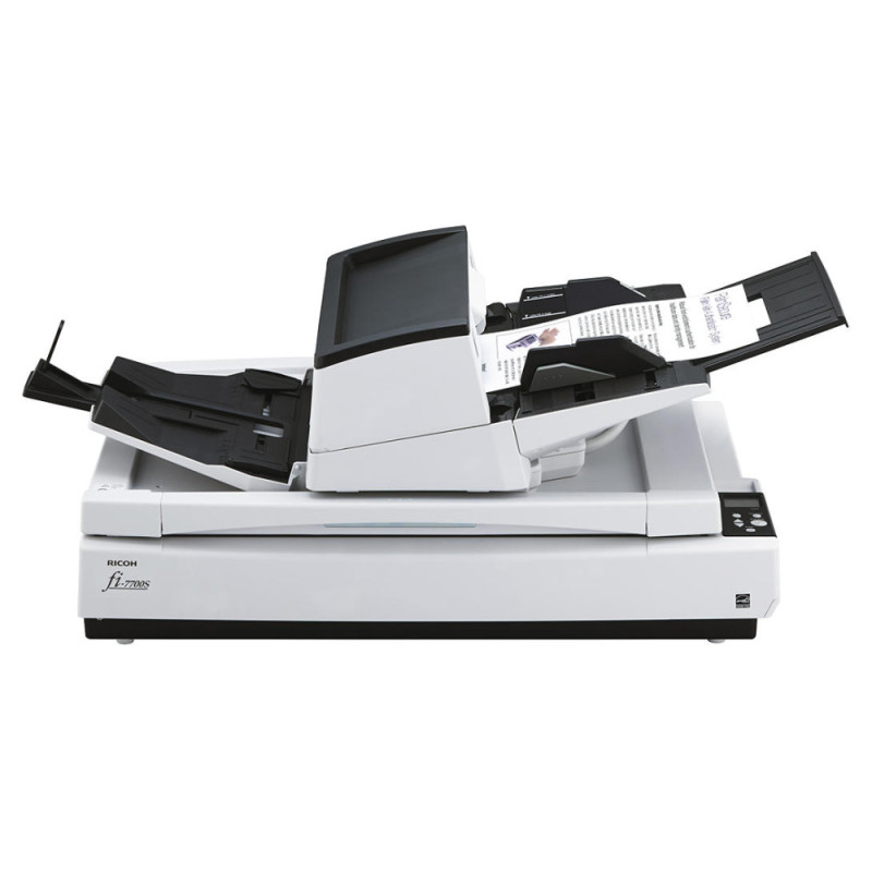 Ricoh fi-7700S — профессиональный документный сканер формата A3 с автоподатчиком и планшетным блоком. Устройство поддерживает одностороннее сканирование и работу с широким диапазоном форматов. Высокая скорость позволяет быстро обрабатывать большие массивы документов. Светодиодная подсветка и программные функции обработки изображений улучшают читаемость цифровых копий. Сканер подходит для офисных и архивных задач.