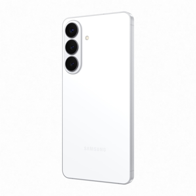 Смартфон Samsung Galaxy S26+ 5G в белом цвете оснащён 6,7-дюймовым Dynamic LTPO AMOLED 2X дисплеем с разрешением 1440 x 3120 пикселей и пиковой яркостью 2600 нит. Тройная основная камера с 50-мегапиксельным широкоугольным модулем и 3x оптическим зумом поддерживает запись видео в 8K. Процессор Exynos 2600 (2 нм) работает вместе с 12 ГБ оперативной памяти и 512 ГБ встроенного хранилища. Аккумулятор ёмкостью 4900 мА•ч заряжается проводом на 45 Вт.