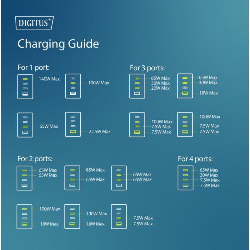 Digitus Зарядное устройство GaN 3хUSB-C, 1хUSB-A, 140W (DA-10305)