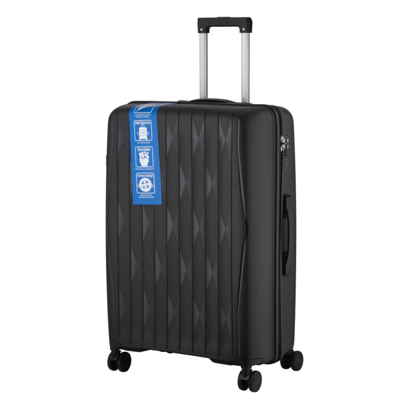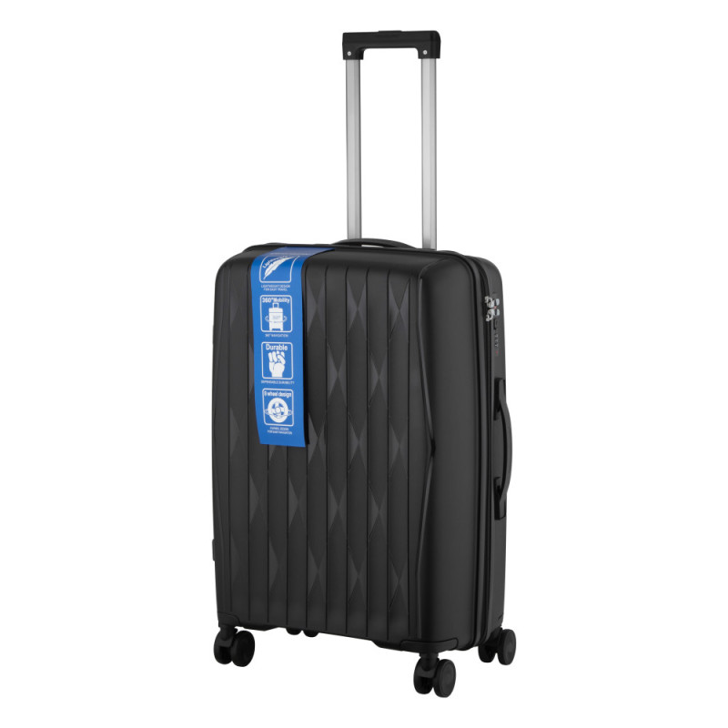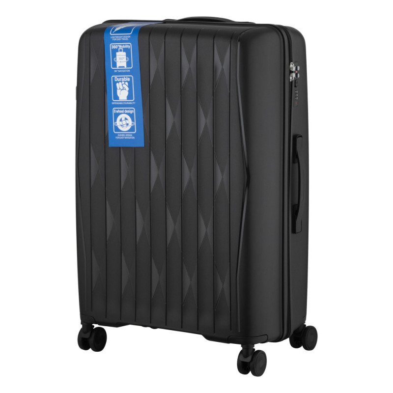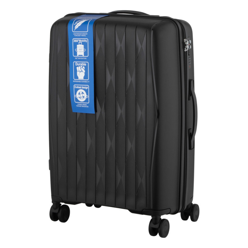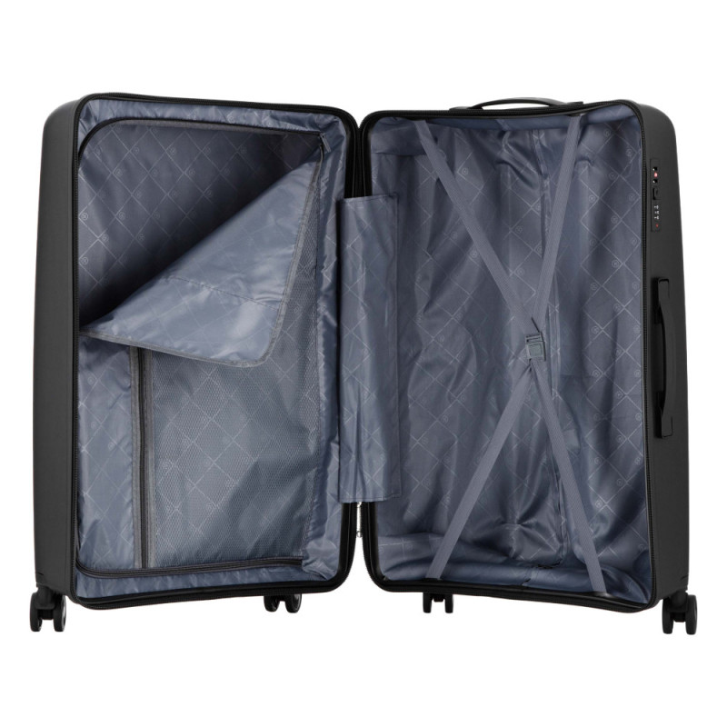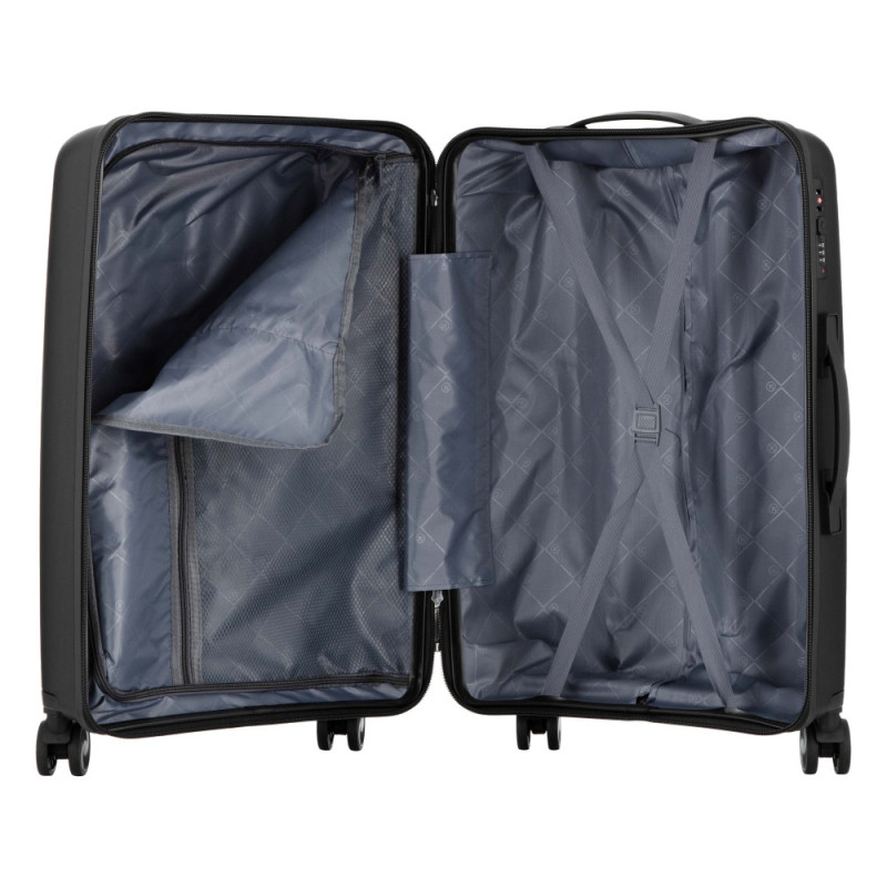 Особенности:двойные колёса с вращением на 360 градусов, защитная молния, предусмотрены разделители и регулируемые упаковочные пояса внутри, тканинний розділювач на блискавці