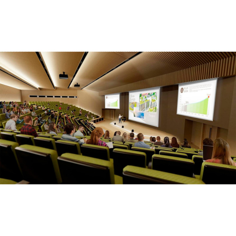 Проектор Epson EB-PU2216B — инсталляционный аппарат с технологией 3LCD и разрешением WUXGA 1920×1200 для чёткого изображения. Яркость 16000 люмен лазерного источника света обеспечивает видимость в больших залах, ресурс лампы достигает 30000 часов в экономрежиме. Контрастность 2500000:1 и коррекция трапеции ±45°/±30° позволяют настроить проекцию на поверхности до 500 дюймов. Подключение через HDMI, HDBaseT, 3G-SDI и RJ45 поддерживает удалённое управление. Корпус весом 24,3 кг размерами 586×218×492 мм подходит для фиксированного монтажа.