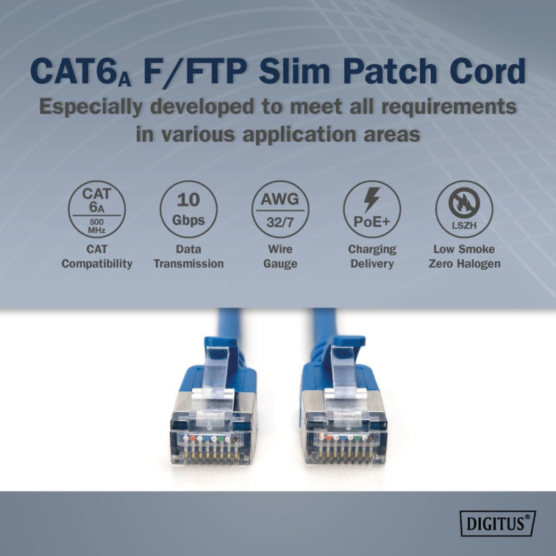 Digitus Патч-корд DIGITUS CAT 6a F-FTP Slim, 2 м, AWG 32/7, Cu, LSZH, синій (DK-1632-A-005S-B)