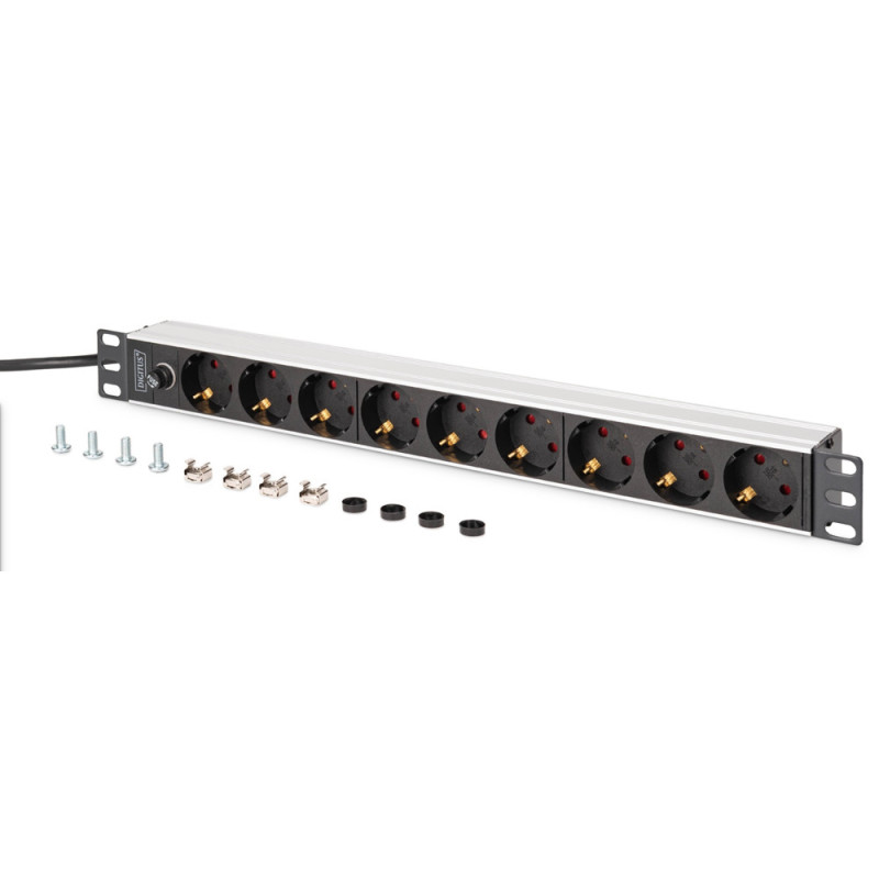 Digitus Пристрій розподілу електроживлення DIGITUS 1U, 8xSchuko, 10A, 250V, запобіжник, вилка C14 (DN-95437)