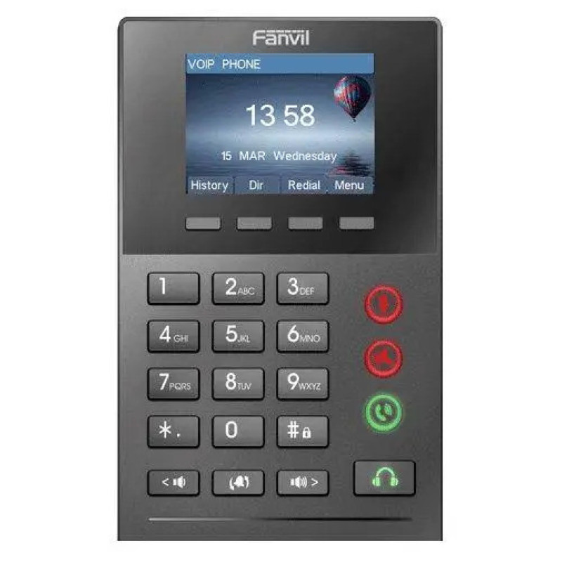 Fanvil X2P — проводной IP-телефон для рабочих мест операторов колл-центра. Модель поддерживает две SIP-линии и оснащена цветным экраном 2,8". Порты Fast Ethernet и питание PoE упрощают сетевое подключение. Технология HD Voice отвечает за чёткую передачу речи.