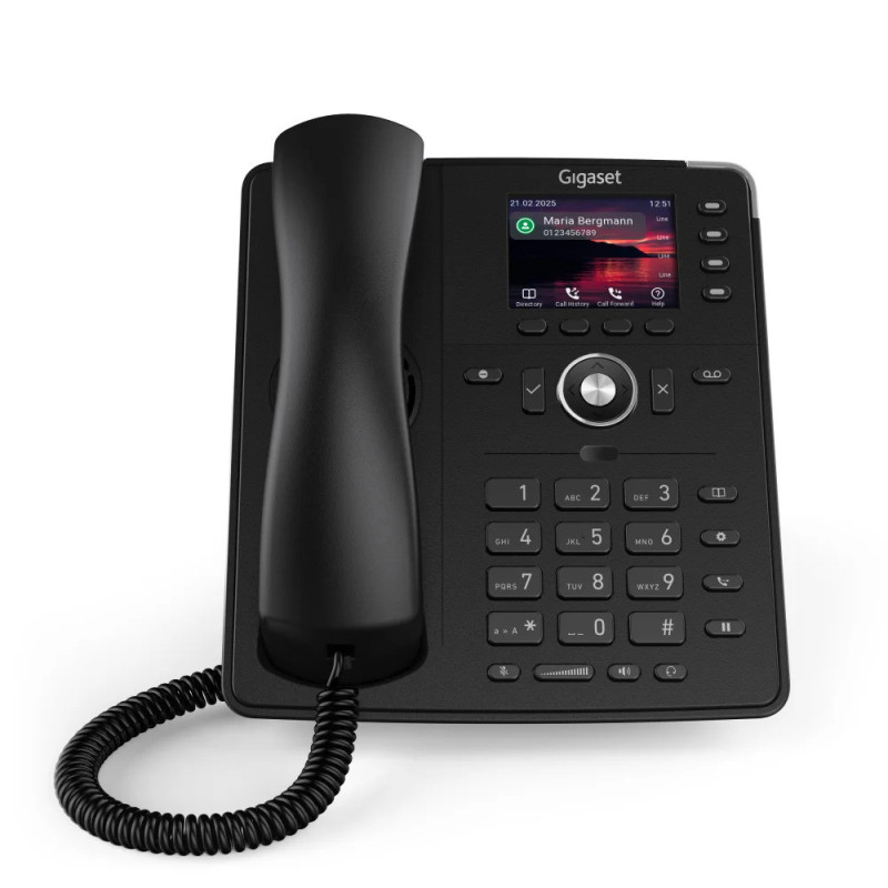 IP-телефон Gigaset Pro Compact P710 оснащён цветным TFT-дисплеем 2,8" с разрешением 320×240. Модель работает с шестью SIP-аккаунтами и имеет четыре программируемые функциональные клавиши. Встроенный гигабитный Ethernet-коммутатор с питанием PoE упрощает подключение в офисной сети. Устройство обеспечивает режим громкой связи с HD-аудио.
