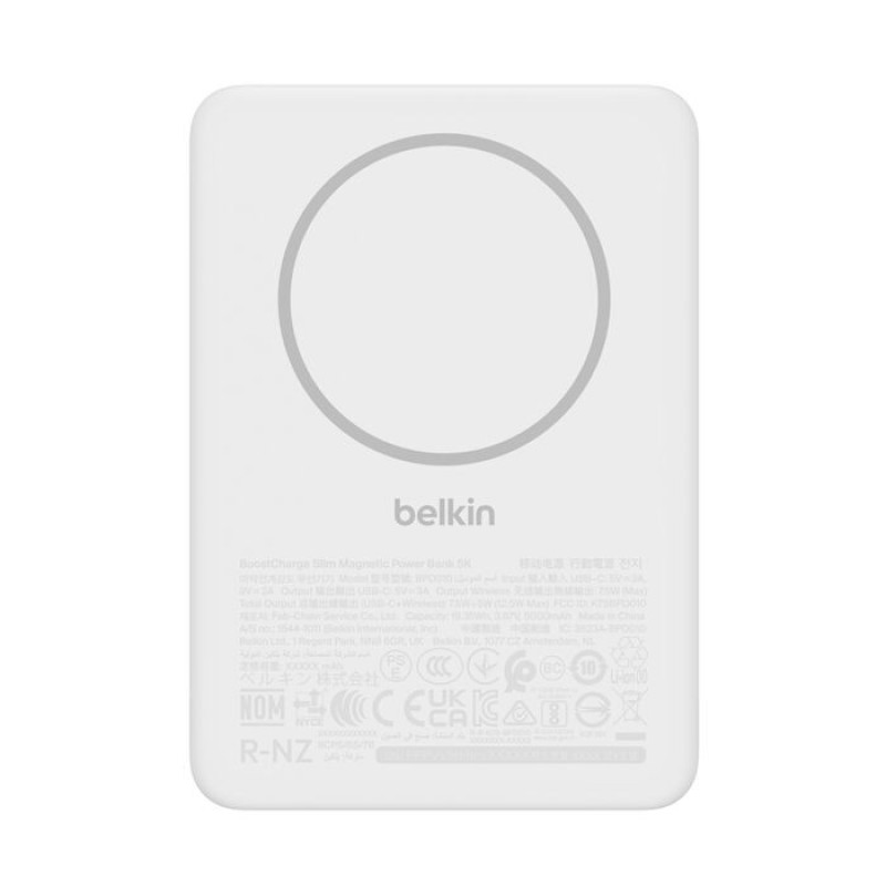 Belkin Акумулятор портативний літій-іонний Power Bank Belkin 5000мА·год, Slim Magnetic, білий (BPD010HQWH)