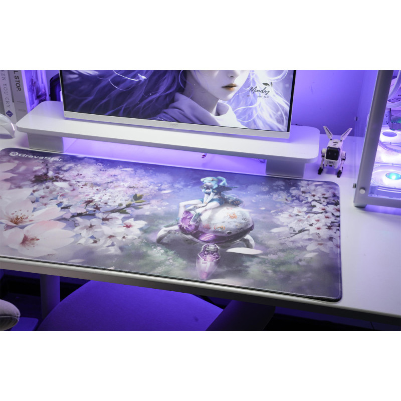 Ігрова поверхня GravaStar SAKURA XL поєднує атмосферний арт із ніжними квітами сакури та футуристичним персонажем, створюючи стильний акцент на столі. Великий розмір 900×450 мм забезпечує простір для клавіатури й миші, залишаючи місце для вільних рухів. Гладка тканинна поверхня сприяє точному ковзанню та стабільному контролю в іграх. Прогумована основа надійно тримається на столі, а прошиті краї підвищують довговічність. Це практичне та декоративне рішення для сучасного робочого чи ігрового сетапу.