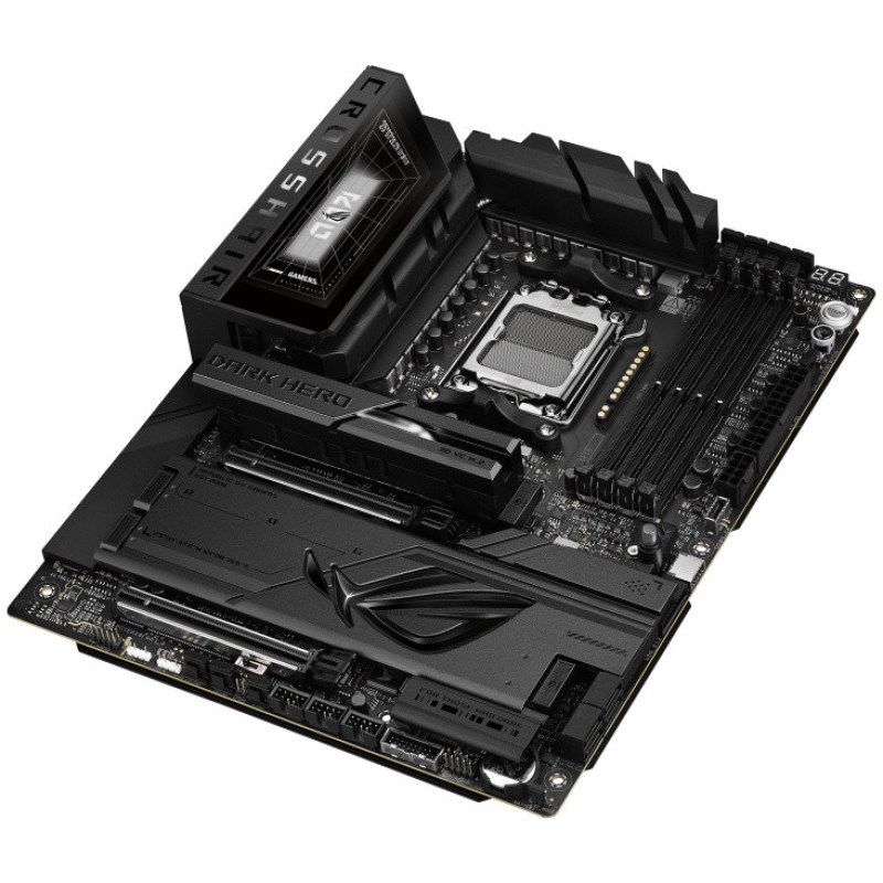 Материнська плата ASUS ROG CROSSHAIR X870E DARK HERO на чіпсеті AMD X870E створена для процесорів Ryzen 9000, 8000 та 7000 серій на сокеті AM5. Підтримує до 256 ГБ DDR5-пам’яті з можливістю розгону до 9600+ MT/s, п’ять слотів M.2 (два з PCIe 5.0), два PCIe 5.0 x16 слоти та подвійний Ethernet 10 Гбіт/с + 5 Гбіт/с. Оснащена Wi-Fi 7, двома портами USB4 40 Гбіт/с, преміум-аудіо SupremeFX ALC4082 з ESS DAC та розширеним набором інструментів для розгону й охолодження.
