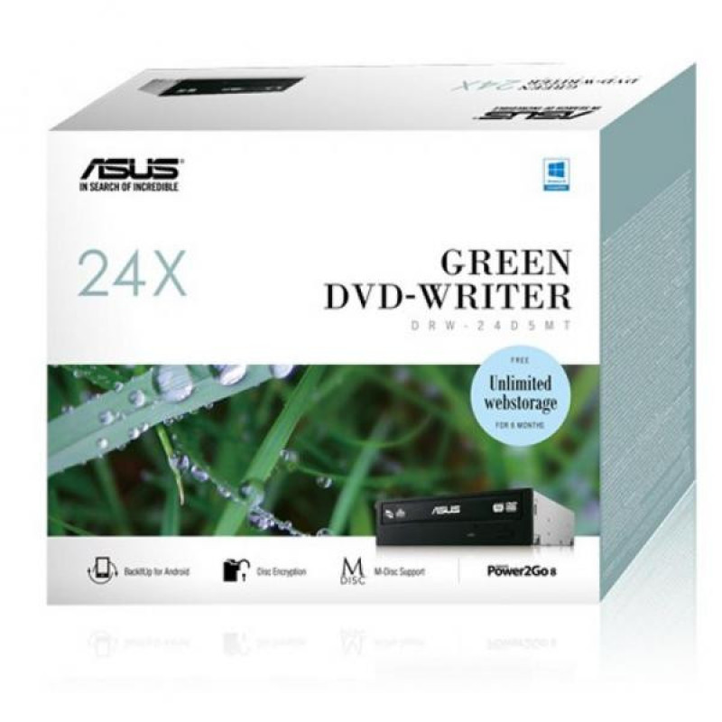 ASUS DRW-24D5MT - внутрішній пише (до 24x) DVD-привід з підтримкою носіїв M-DISC, термін служби яких становить понад тисячу років. Запис DVD-дисків на швидкості 24x. Оснащений технологією E-Green - автоматичний перехід в сплячий режим зі зменшеним енергоспоживанням.