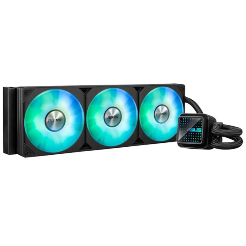 Система рідинного охолодження ASUS PRIME LC 360 ARGB оснащена 360-мм алюмінієвим радіатором та мідною контактною площадкою водоблоку для ефективного відведення тепла від процесорів. Три попередньо встановлені 120-мм вентилятори з ARGB-підсвіткою забезпечують стабільний повітряний потік до 75,7 CFM при шумі до 34 дБ. Водоблок має змінні лінзи з ефектом нескінченності та синхронізується з Aura Sync, а посилені рукави шлангів підвищують довговічність конструкції.