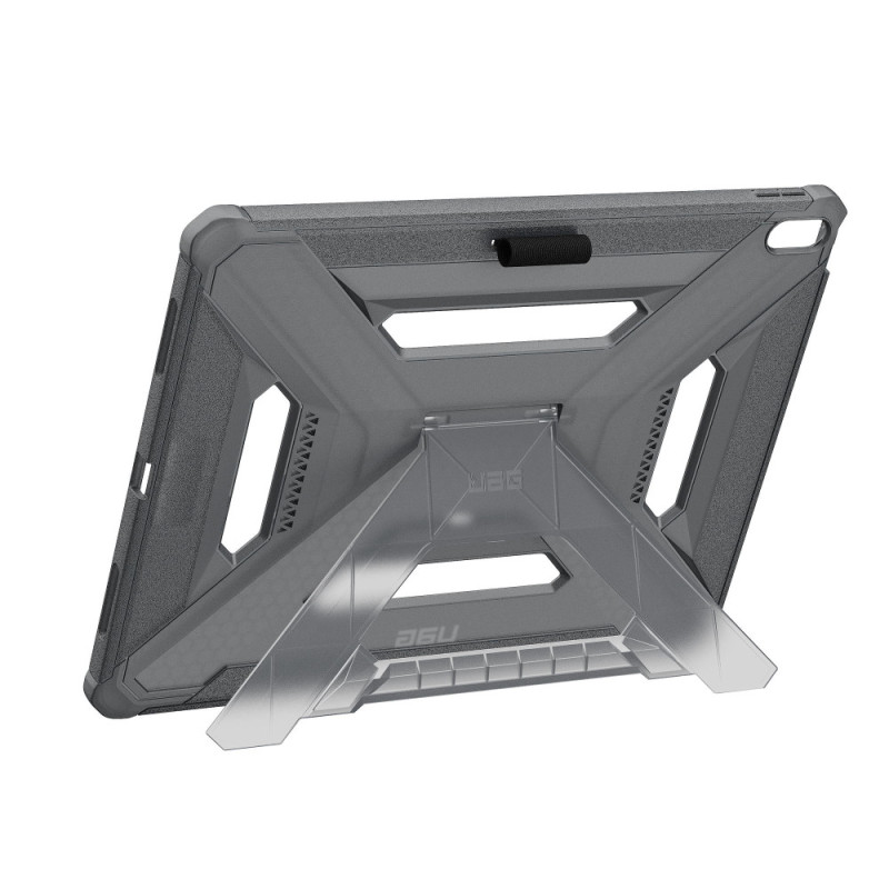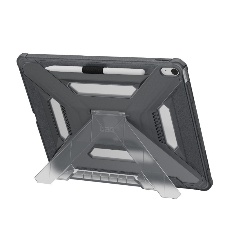 Чохол UAG Scout+ для iPad Air 13" поєднує легкість конструкції та ефективний захист від щоденних навантажень. TPU-основа зберігає гнучкість і пом’якшує удари, не збільшуючи габарити пристрою. Інтегрована підставка підтримує комфортні сценарії перегляду та набору тексту. Текстуровані бокові поверхні забезпечують стабільний хват, а вентиляційні отвори сприяють охолодженню під час роботи.