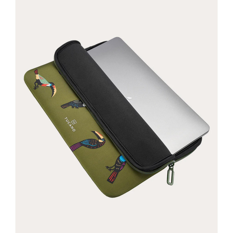 Чохол Tucano Tucani 15"/16" створено на честь 40-річчя Tucano. Модель виготовлена з еластичного неопрену й прикрашена яскравим принтом із туканом. Anti-Slip System® надійно утримує ноутбук усередині, запобігаючи вислизанню під час транспортування. Плаский шов забезпечує щільне прилягання та тонкий профіль. М’яка внутрішня підкладка оберігає пристрій від подряпин.