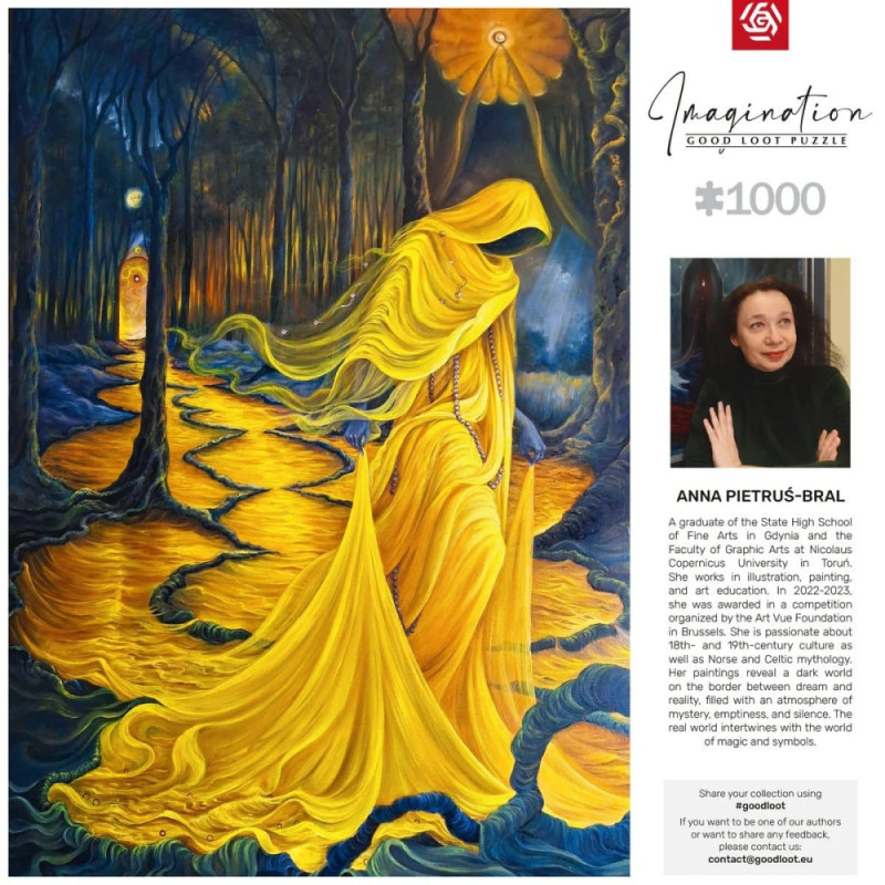 Пазл GoodLoot Imagination: Anna Pietrus-Bral ID-2025-01-01 на 1000 елементів відтворює авторську ілюстрацію Anna Pietrus-Bral. Зображення поєднує мотиви міфології, історичних мотивів і символічні образи у цілісній композиції. Елементи мають точне прилягання, а поверхня з ефектом полотна зменшує відблиски. Ілюстрація формує атмосферу з елементами символізму.