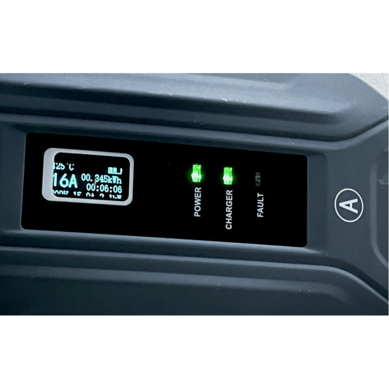 відображення зарядного струму, відображення напруги, відображення потужності, відображення часу заряджання, відображення стану зарядки, відображення внутрішньої температури
