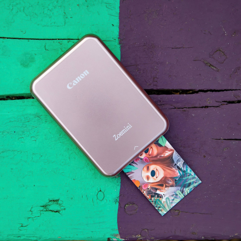 Canon Zoemini PV-123 — портативний принтер для друку фото зі смартфона. Компактний корпус зручно брати із собою в подорожі або на зустрічі. Під’єднання через Bluetooth спрощує передавання зображень. Технологія безчорнильного друку виключає потребу в картриджах. Пристрій створює невеликі фотокартки з клейкою основою.