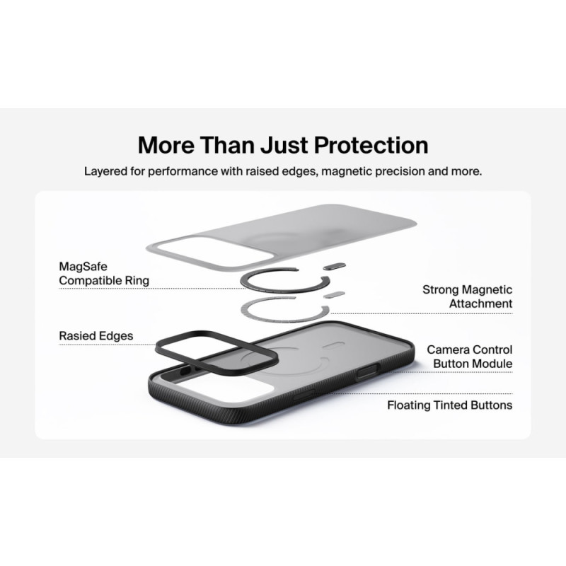 Додатково:виготовляється із перероблених матеріалів, сенсорна кнопка керування камерою, сумісність із бездротовими аксесуарам, протиковзний текстурований бампер, поліровані кнопки, випнуті краї, напівпрозоре покриття з м’яким фінішем