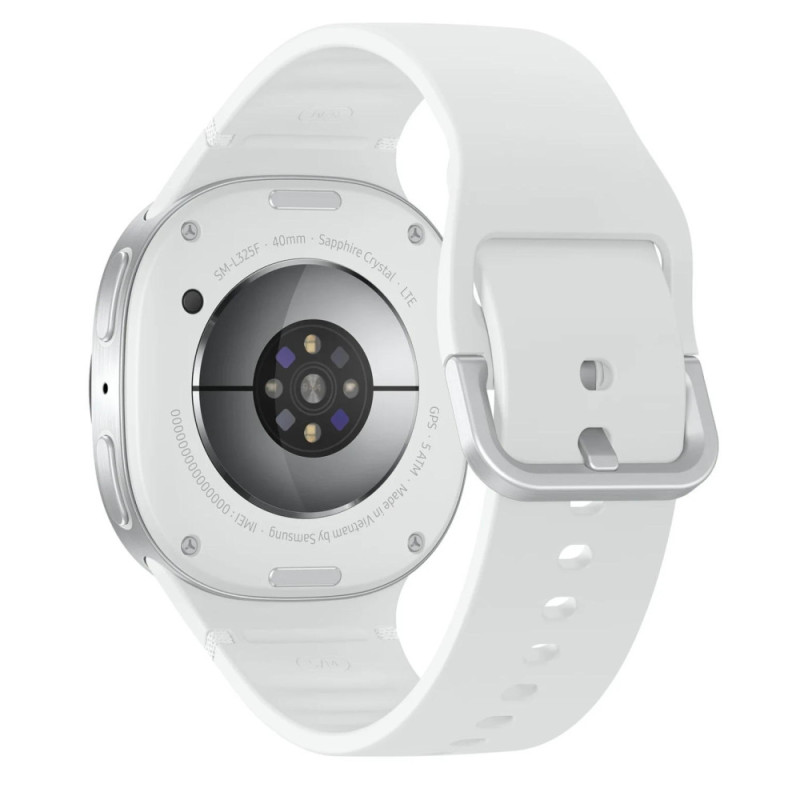 Samsung Galaxy Watch 8 40 мм e-SIM (L325) — компактний смарт-годинник у сріблястому корпусі з алюмінієвою рамкою. Круглий Super AMOLED-дисплей 1,34" із роздільною здатністю 438×438 пікселів і сапфіровим склом забезпечує чітке зображення за різних умов освітлення. Платформа Wear OS 6 з оболонкою One UI 8 Watch працює разом із чипсетом Exynos W1000, створеним за 3-нм техпроцесом. Модуль e-SIM і LTE забезпечує автономний зв’язок без постійного з’єднання зі смартфоном. Захист IP68 і відповідність MIL-STD-810H розширюють щоденні сценарії використання.