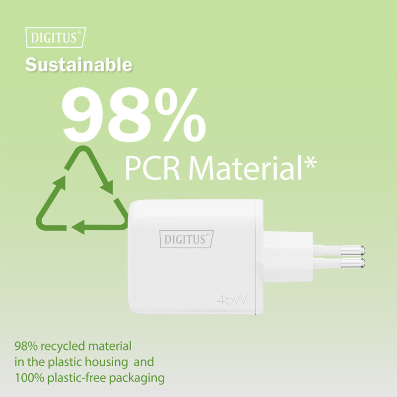 Digitus Зарядний пристрій GaN 1хUSB-C, 1хUSB-A, 45W (DA-10302)