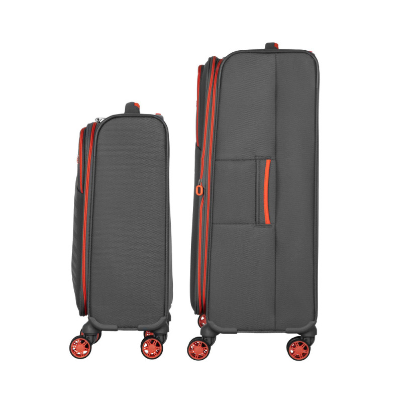 Набір валіз 2Е (M+S) і рюкзаків Cabin Size – це практичне поєднання функціональності, легкості та сучасного дизайну для подорожей будь-якого формату. У комплекті дві валізи – середнього розміру (43 × 67 × 26/32 см, 64/78 л, 2,5 кг) і маленька (38 × 55 × 20 см, 35 л, 1,95 кг). Жорсткий полегшений каркас виробів вкрито зносостійким матеріалом (100 % поліестер) із фактурним плетінням, що забезпечує привабливий вигляд і стійкість до механічних пошкоджень. Усередині передбачено регульовані пакувальні ремені для фіксації речей і внутрішню кишеню на блискавці.