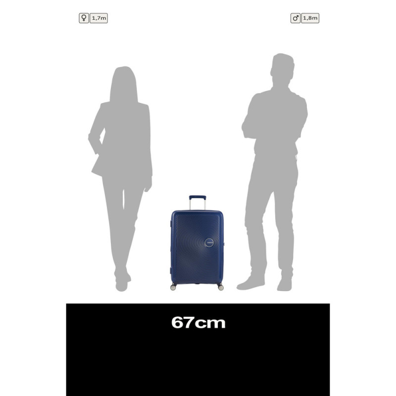 Валіза American Tourister Soundbox M — жорстка дорожня модель середнього розміру з корпусом із поліпропілену. Підходить для поїздок на кілька днів і авіаперельотів із багажним відділенням. Розширення на блискавці збільшує місткість із 71,5 до 81 л. Чотири подвійні колеса та телескопічна ручка спрощують транспортування. Вбудований TSA-замок підтримує контроль без пошкодження корпусу.