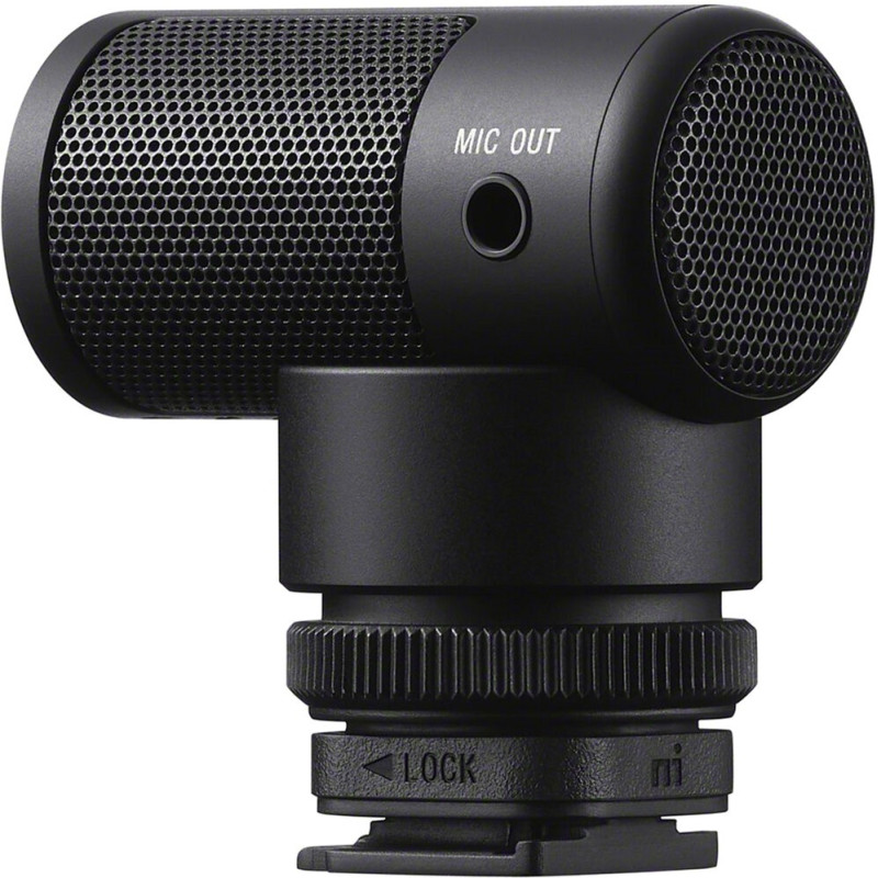 Мікрофон Sony ECM-G1Z з капсулем діаметром 14,6 мм фіксує чіткий голосовий звук, мінімізуючи шум оточення. Компактна конструкція вагою 34 г і довжиною 48,5 мм полегшує кріплення на камеру через Multi Interface Shoe. Живлення та керування надходять від камери для зручного використання. Цей пристрій оптимізує запис аудіо для відеопроєктів. Зображення слугує ілюстрацією.